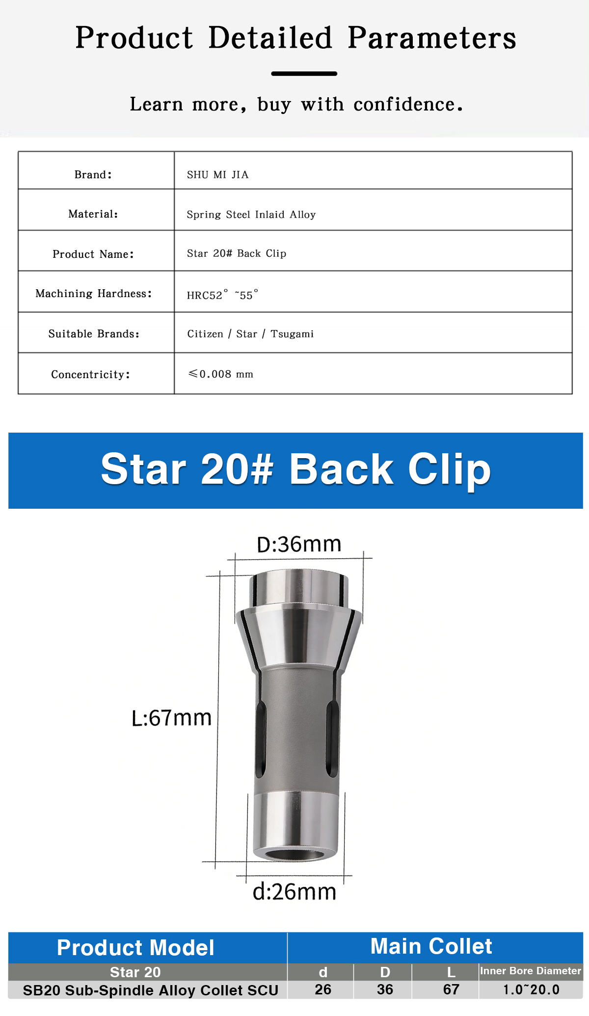 Star SB20/Citizen SCU Back-Clamp φ1–φ20 Alloy Hardened Back-Shaft Collet