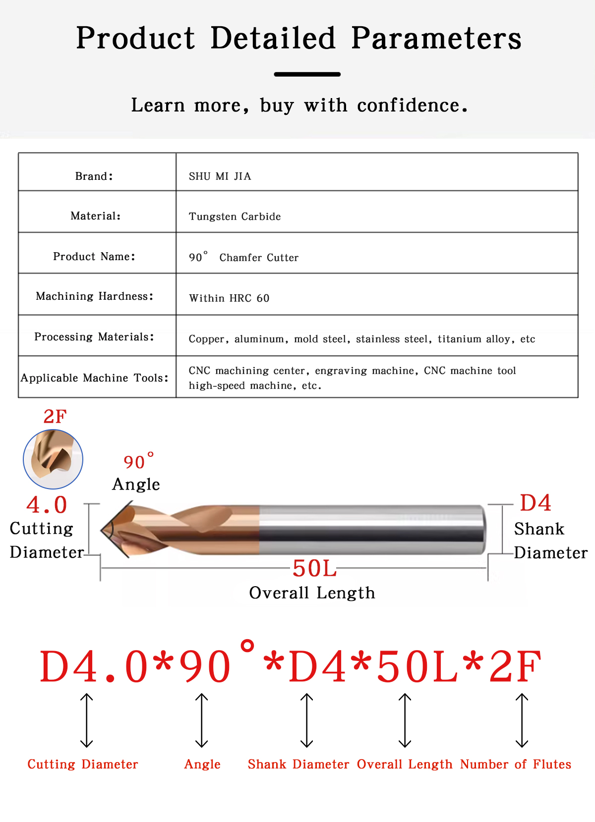 2-Flute φ1–φ10mm HRC65°Carbide 90 Degree Chamfer End Mills for CNC Machining