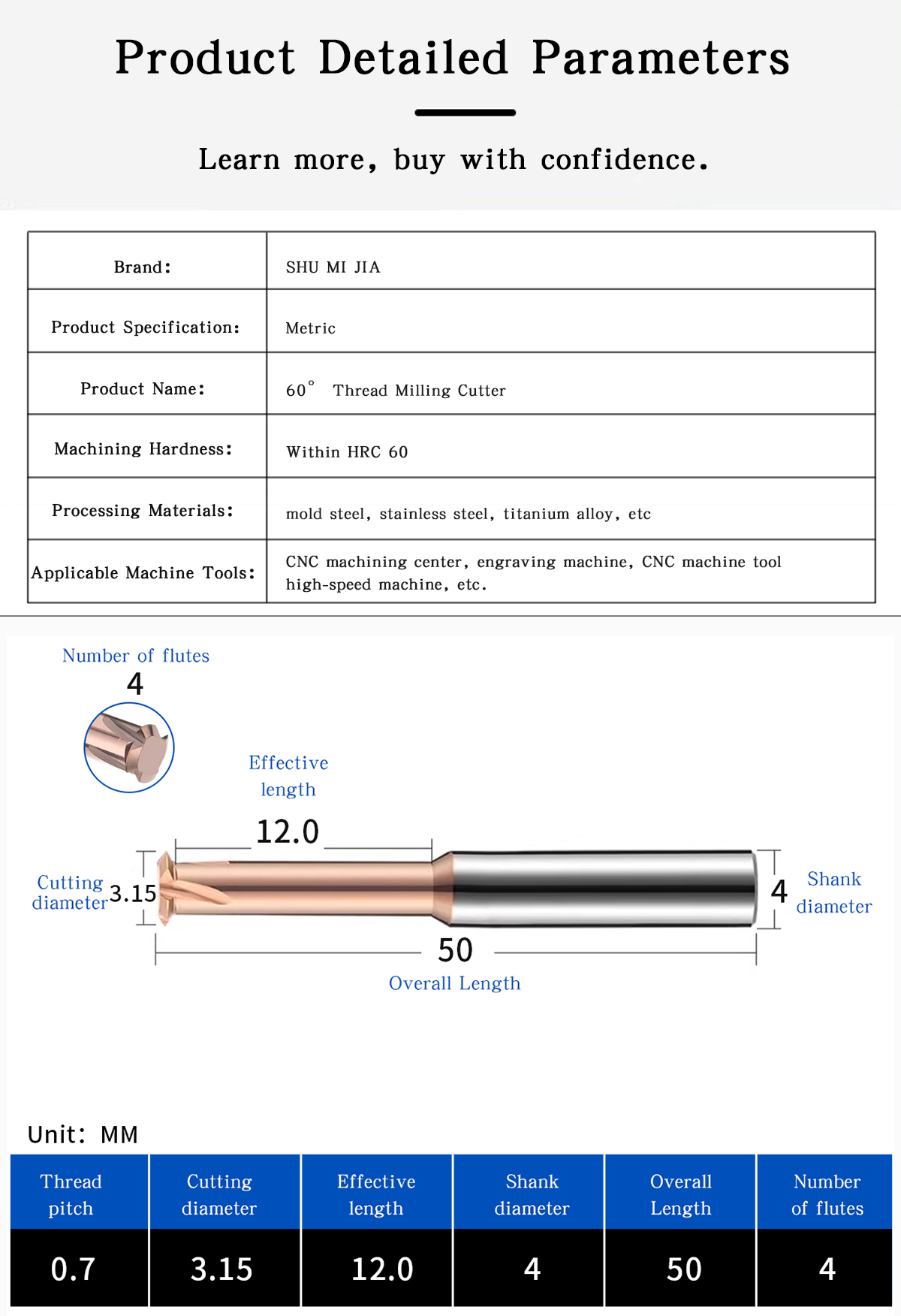 The 1-flute carbide thread mills are designed for precision internal and external threading in CNC machining. With a diameter range of φ1–φ10 mm, these tools are ideal for producing high-quality threads in small and medium-sized components.